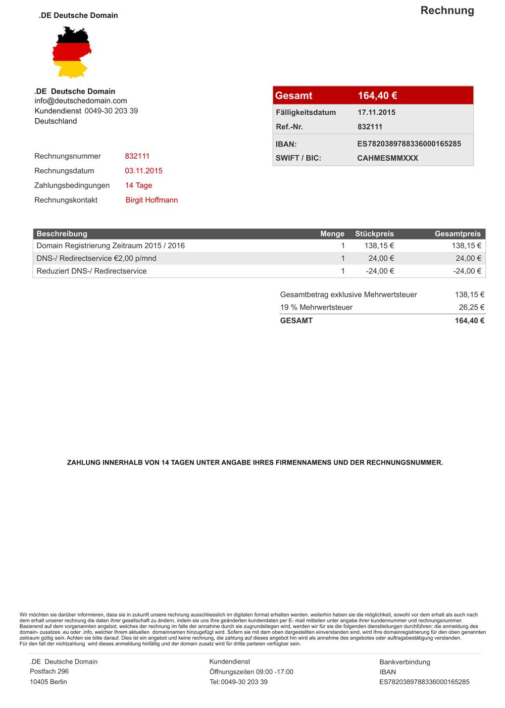 Vorsicht bei Rechnungen von .DE Deutsche Domain