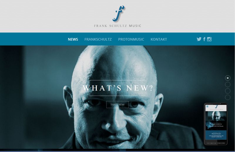 Frisch am Start ist auch ProTonMusic (frankschultzmusic) in Neuenburg am Rhein. harald wehrle.corporate communcation war der kreative Part bei der Inszenierung des Web-Auftritts, der mit vielen Bildern und informativen Texten das musikalische Spektrum des Profimusikers, Studioinhabers und Music Coach Frank Schultz aufzeigt.