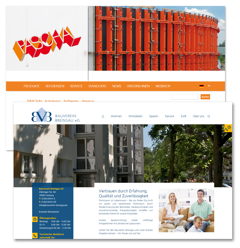 Ein neues Design bekamen die Webseiten www.bauverein-breisgau.de und www.paschal.de, die beide auf dem Content Management System webEdition basieren. Die bestehenden Inhalte blieben erhalten, da in webEdition Inhalt und Layout von einander getrennt sind.