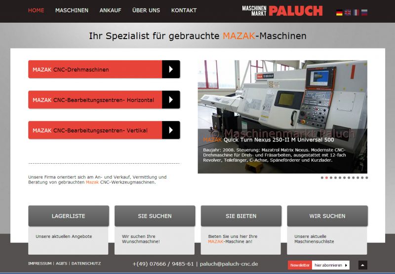 Maschinenmarkt Paluch aus Denzlingen bei Freiburg orientiert sich am An- und Verkauf, Vermittlung und der Beratung von gebrauchten C.N.C. gesteuerten Werkzeugmaschinen. Auch diese Seite ist "powered by webEdition", das Design erstellte die Agentur creativelinx für uns.