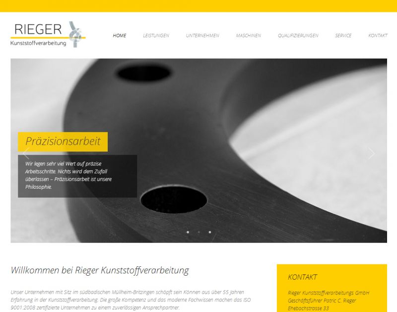 Rieger Kunststoff Verarbeitung GmbH  mit Sitz im südbadischen Müllheim-Britzingen ist ein Unternehmen, das mit Kompetenz und Können Kunststoff verarbeitet. Im Auftrag der MS Agentur, die das Design erstellte, programmierten wir die Seite auf Basis des CMS webEdition.